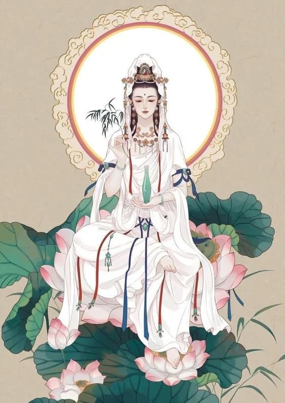 Guanyin er den gudinde vi beder til og sender ønsker til, når vi laver bålmantra om søndagen. Barmhjertighedens Gudinde Guanyin hjælper alle, der beder med et rent hjerte og rene tanker med at opfylde ønsker om sundhed, kærlighed, velvære samt forløsning af negativ energi, karma og følelser.